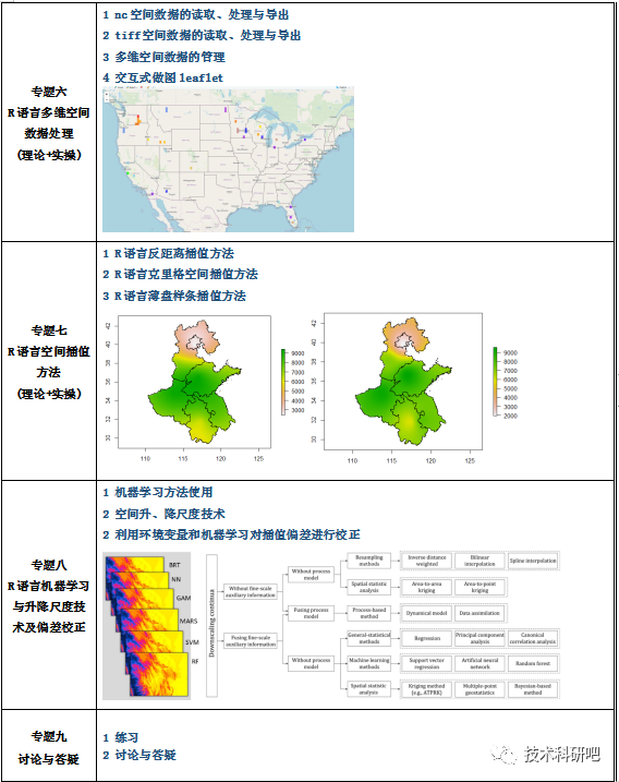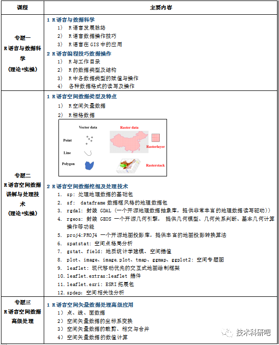 随着地理信息系统(GIS)和大尺度研究的发展,空间数据的管理、统计与制图变得越来越重要。R语言在数据分析、挖掘和可视化中发挥着重要的作用,其中在空间分析方面扮演着重要角色,与空间相关的包的数量也达到130多个。在本次课程中,我们将结合一些经典的例子培训R语言在空间数据处理、管理以及可视化的操作,从空间数据计量、空间数据插值、空间数据建模、机器学习、数据可视化、空间协变量提取等方面让你全方位进行GIS操作和制图,从此摆脱ArcGIS的复杂操作,实现空间数据的自动化、快速批量操作、建模及其可视化。 . Z0 B d5 d; f1 d, Z+ t/ }