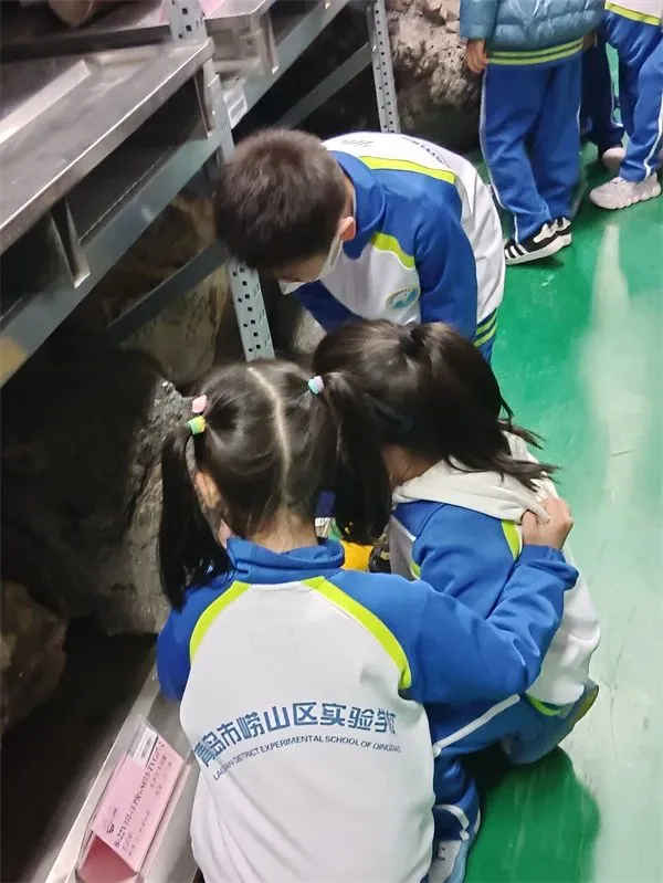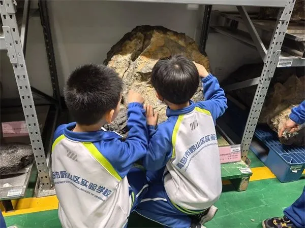最后,孩子们来到样品库房,观察来自不同大洋的各种岩石样本,近距离感受不同海洋岩石的特点。
