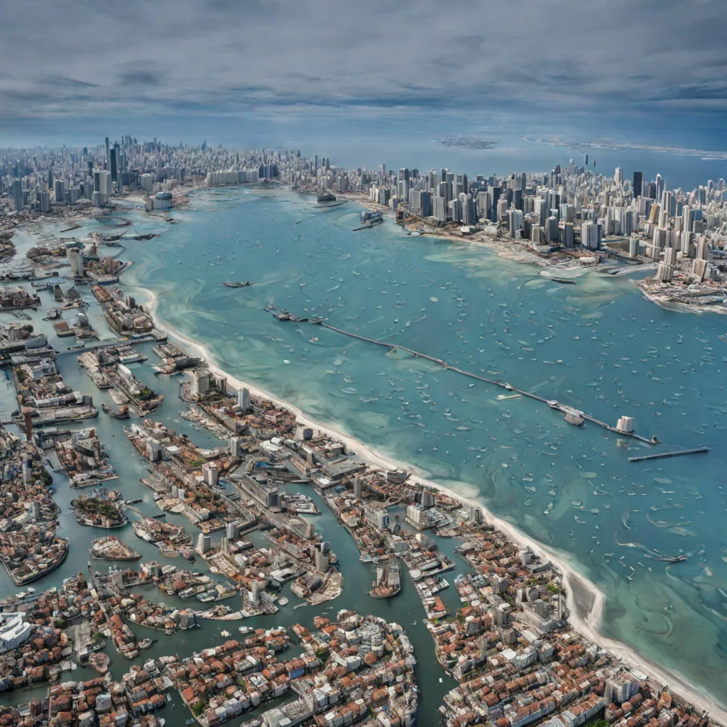 $ G0 q+ t6 j1 [( l) I 气候变化和海洋城市化相互作用,导致海平面上升、风暴严重程度增加以及沿海生态系统和社区面临的挑战。温室气体引起的变暖和冰融化导致海平面上升,威胁着沿海地区,需要建设海防设施。气候变化还影响居住在这些结构中的海洋生物以及珊瑚礁和红树林等主要沿海生态系统,从而影响食物来源和城市的自然防御。然而,城市地区本身通过排放和土地利用变化加剧了气候变化。 3 I; O: T" a: a0 I" y
