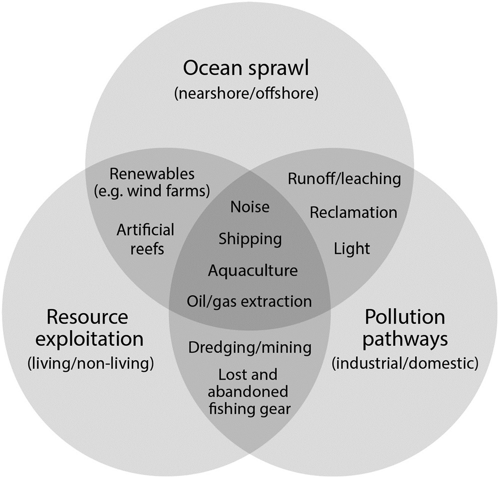 图1 海洋城市化三大驱动因素(资源开发、海洋扩张和污染途径)