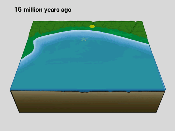 1 \+ u4 r9 ]/ w$ \ 中新世海岸线移动
