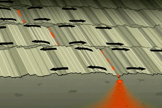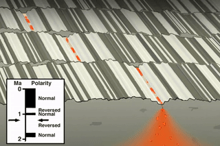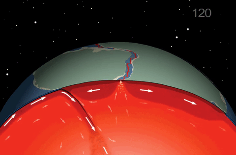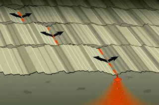 5 ], v/ M+ u. ~- b1 ^$ y 大洋中脊的生长过程 * Z( b0 d2 z. E