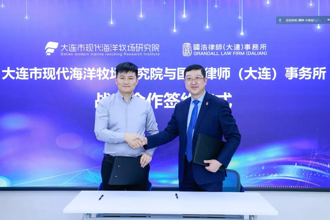 借此机会,大连市现代海洋牧场研究院院长暨创始人、农业农村部海洋牧场建设专家咨询委员会委员、农村农业部全国海洋牧场产业开发工作站站长刘永虎与张旭涛律师分别代表大连海洋牧场研究院和国浩大连办公室签署了战略合作协议。双方将以本次签约为契机,整合资源优势,在海洋牧场建设领域共同打造行业发展新态势,为国家海洋产业开发带来活力,携手成为国家海洋发展战略的中坚力量。
