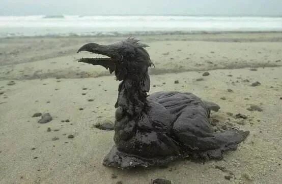 1 h; {) ]; z, { 海上漏油事件中被污染的海鸟