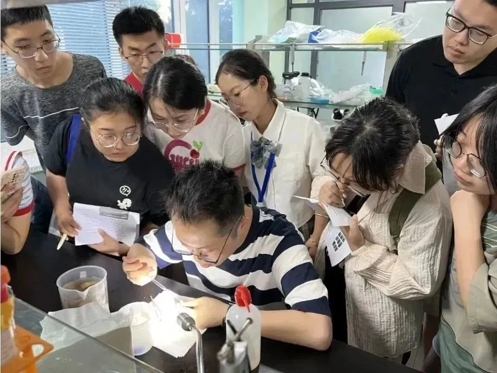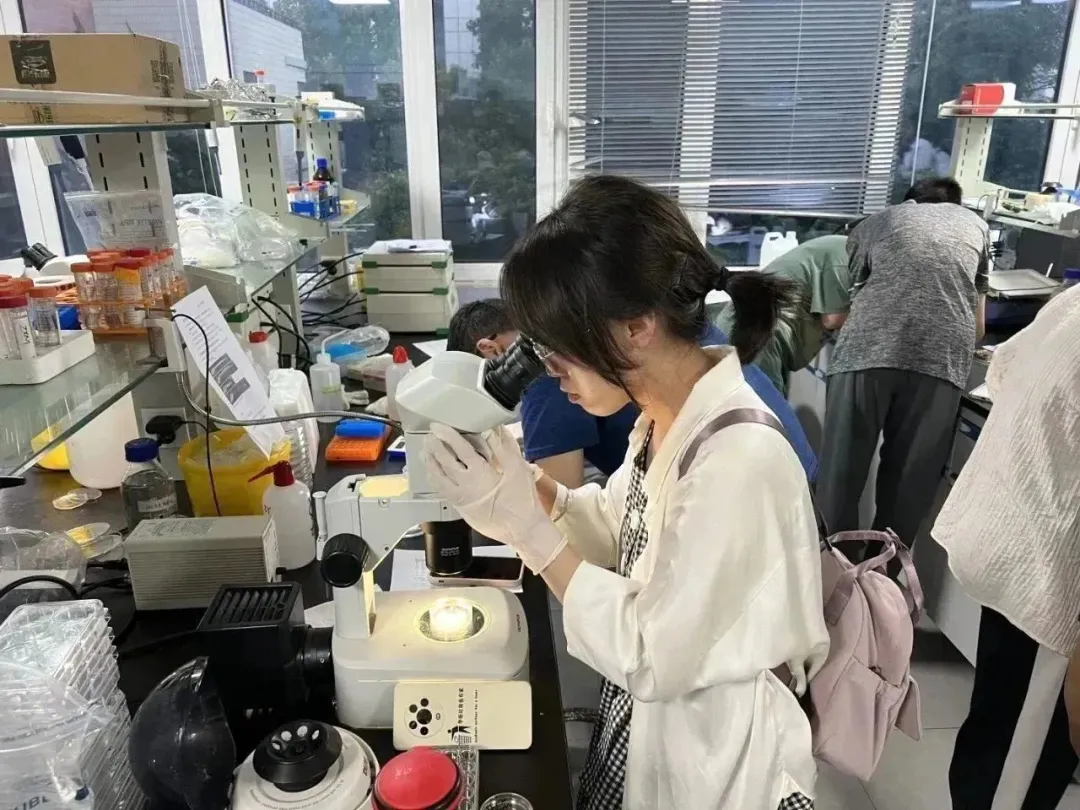 为进一步将理论学习和实验实践有效结合,此次暑期学校特别安排分组实验,包括海鞘早期胚胎发育及成体组织观察、胚胎组织解离、单细胞悬液制备和质控、CRISPR-cas9 基因编辑技术应用等。