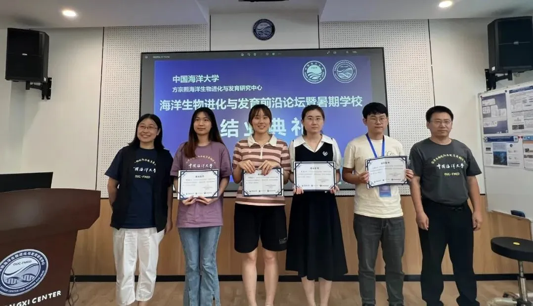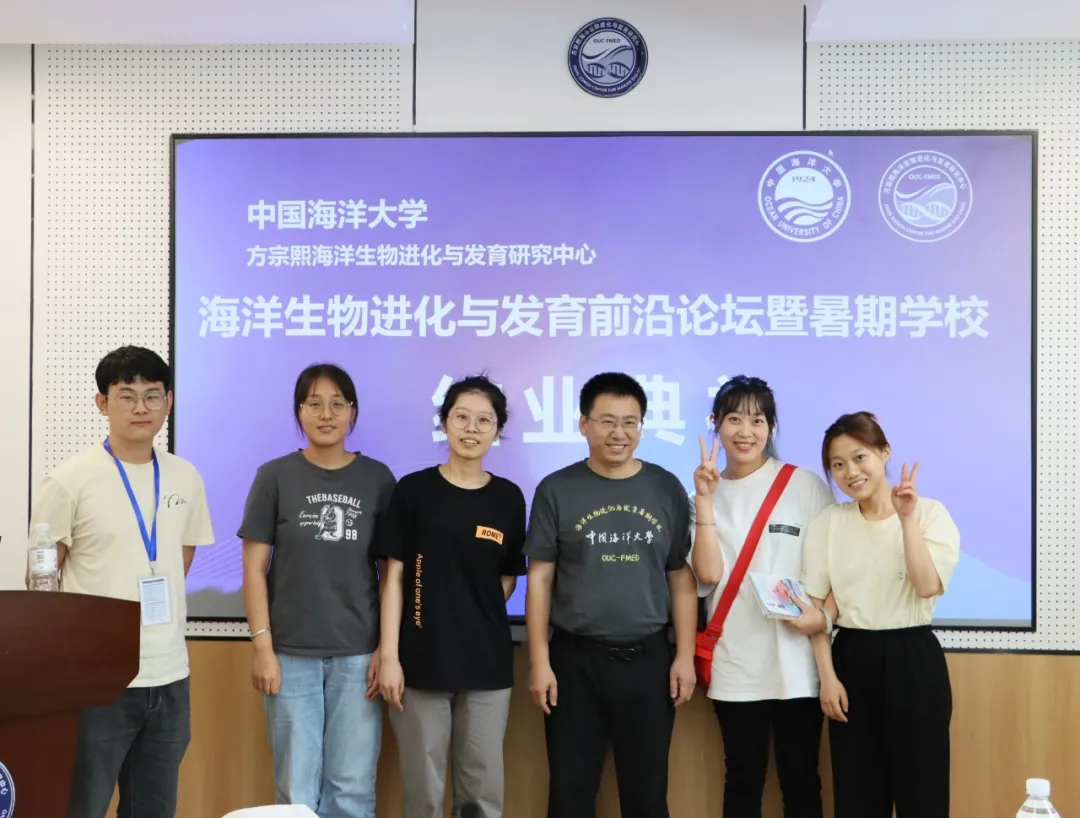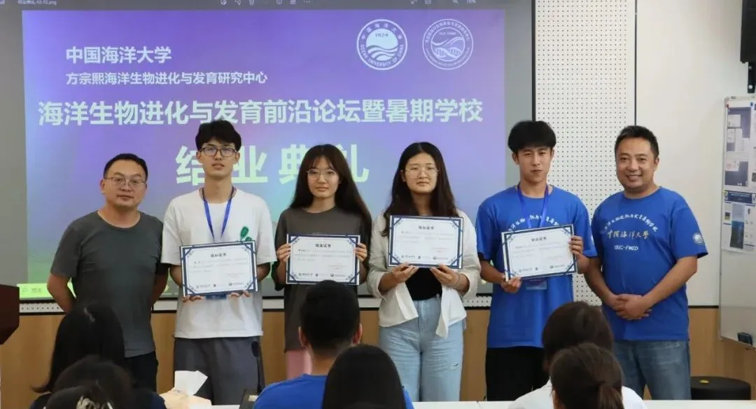 结课仪式上,董波教授对本届暑期学校进行了总结,并与陈凯教授、王玮教授、于海燕副教授、杨秀霞副教授和杨立昆博士一同为暑期学校的学员颁发结业证书。方宗熙海洋生物进化与发育研究中心目前搭建了影像平台、单细胞平台、生物物理平台等,并且大量相关课题研究正在进行中,构建了“多导师+项目+平台”的研究生联合创新培养模式,打造严格选拔到过程考核的精英化人才培养管理体系,吸引更多学生加入海洋生物的科学研究中。3 D1 [. ^! [9 [1 p; T! \2 b$ i8 K