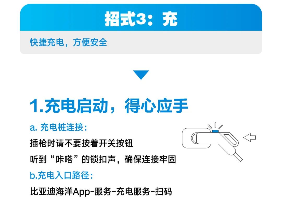 6 g5 ]5 H5 n% y% u! O0 z 该功能旨在辅助用户连接充电桩进行充电操作,用户可按照路径“比亚迪海洋 App-服务-充电服务”中,进行扫码配对操作。