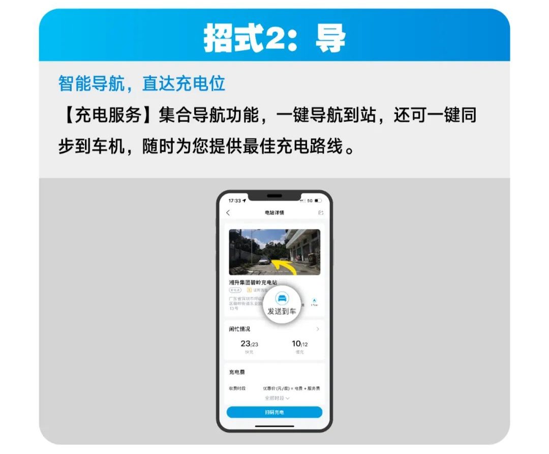 ' X( M) U1 R" J }+ z 充电服务集合导航功能,支持用户一键导航到充电站,导航数据可同步至车机使用。