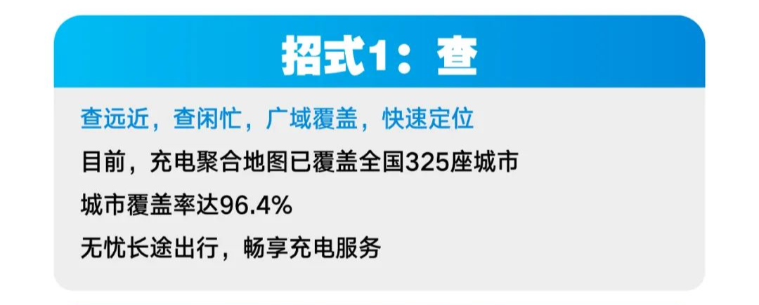 该功能支持查看充电桩远近、空闲状态等信息。内置的充电聚合地图已覆盖全国 325 座城市,覆盖率约 96.4%。