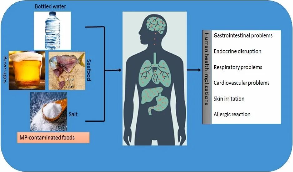 瓶装水中的微塑料来自塑料瓶本身、装瓶和运输过程。尽管饮用水处理通常可以有效去除各种水载颗粒,包括微塑料,但重要的是要考虑到处理厂内的某些组件和分配网络是由塑料制成的。随着时间的推移,这些塑料材料的侵蚀或降解可能会将微塑料引入饮用水中。除了瓶装水之外,在蜂蜜、牛奶、啤酒和盐等多种食品中都检测到了微塑料,来源可能是加工或包装过程。在这些日常食品中检测到的微塑料表明,我们的环境广泛受到微塑料的污染,即使是微量的。