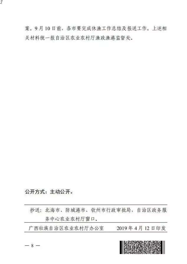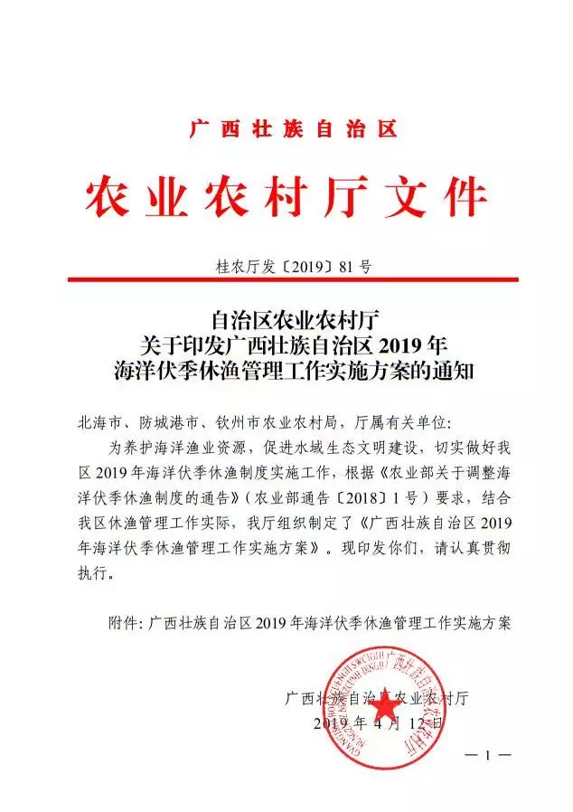 - `8 U5 `6 F# A% X9 S2 P 广西壮族自治区 2019 年海洋伏季休渔 . [- b8 x% u1 x3 h