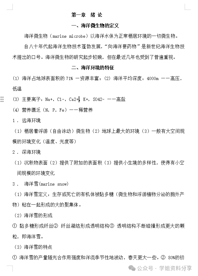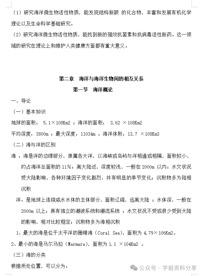 9 b5 ?! k: u# r; Y 好了,最后学姐再简单分享下海洋生物学这门课的一些主要考点。