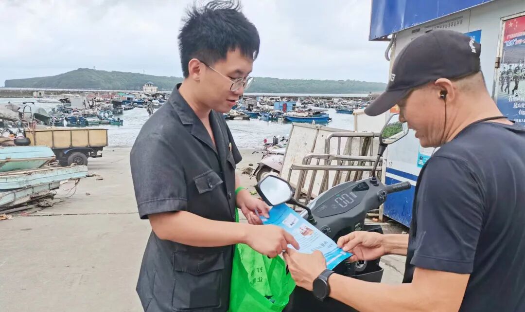 2023年8月15日,在首个全国生态日到来之际,同时又临近休渔期结束,北海市海城区人民法院涠洲生态旅游法庭紧紧抓住这两个有利契机,深入涠洲岛东湾社区、南湾社区、北港村和西角村开展“打击非法捕捞‘涠’护海洋资源”法治宣传活动,引导渔民自觉遵守法律法规,共同维护海洋生态环境和渔业产业的可持续发展,积极践行“绿水青山就是金山银山”生态理念。