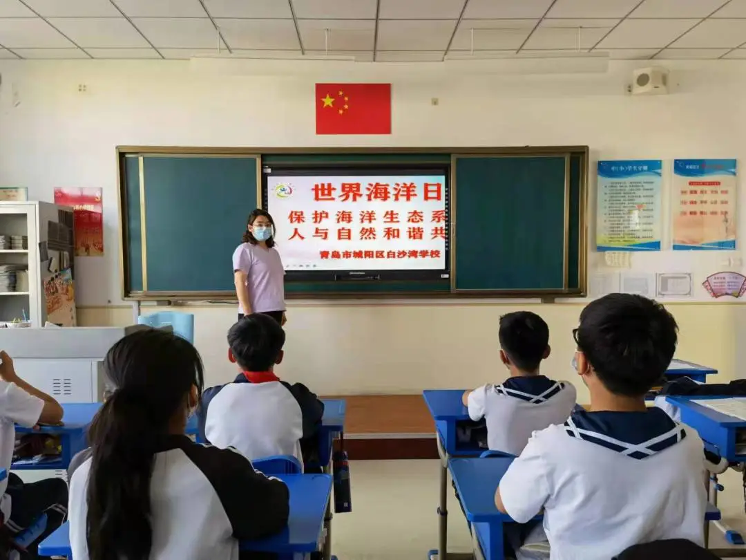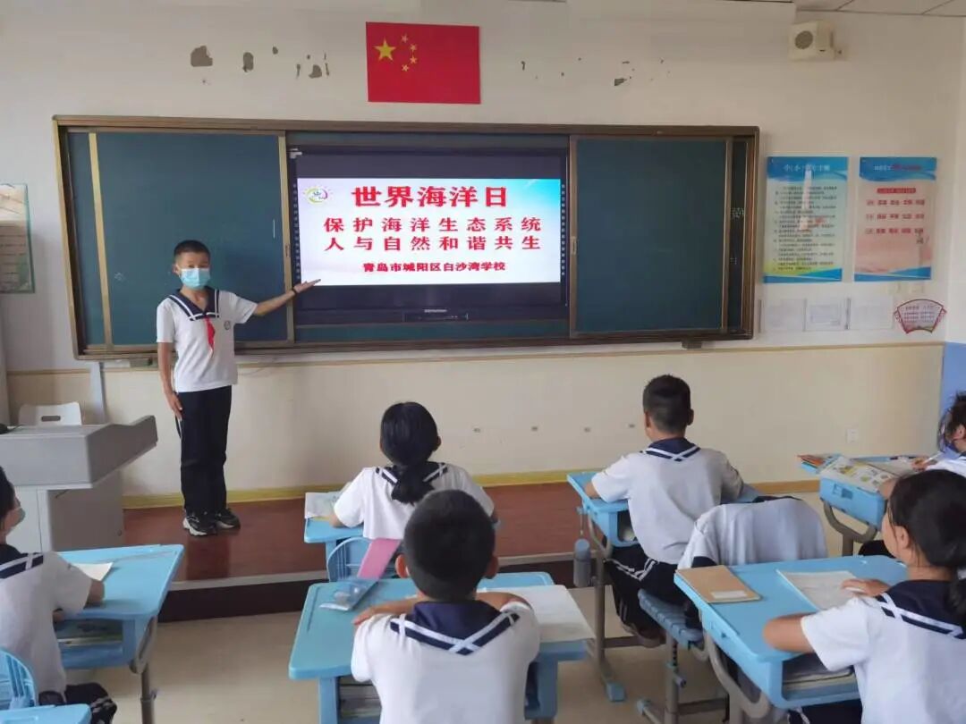 + i* F/ _7 |# [, m 蓝色海洋孕育了人类的生命,丰富的海洋资源支撑起了人类文明的发展,但是近百年来现代文明的发展却严重污染了海洋环境,特别是海洋垃圾问题日益突出。如果不采取措施,海洋将无法负荷,而人类也将难以生存。为了提高队员海洋环保意识,在“世界海洋日”暨“全国海洋宣传日”到来之际,青岛市城阳区白沙湾学校开展以“保护海洋生态系统 人与自然和谐共生”为主题的世界海洋日系列活动。 保护海洋倡议书