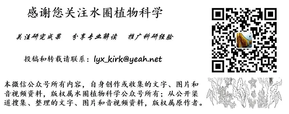 / S4 _8 w5 C! i: ]- k) ] 5. Haizheng Hong, Dongmei Li, Wenfang Lin, Weiying Li, Dalin Shi. Marine Ecology Progress Series. 2017. 海洋浮游植物可能受益于CO₂浓度的增加,这主要归因于CO₂浓缩机制(CCM)的下调,为其他细胞过程节省了能量。然而,氮供应(充足或限制)条件可能对CO₂浓度升高时藻体的胞内代谢过程产生影响。本研究中,对模式硅藻假微型海链藻(Thalassiosira pseudonana)、三角褐指藻(Phaeodactylum tricornutum)和威氏海链藻(Thalassiosira weissflogii)在2个CO₂水平(当前大气CO₂浓度和升高的CO₂浓度)和2个氮供给水平(氮充足和氮限制)条件下进行了培养,测定其光捕获、碳固定、光合作用、呼吸作用和氮同化等关键生理代谢过程,然后纳入能量预算来比较CO₂对代谢途径的影响,以及随后的光合作用和碳固定的变化,这一系列变化是在不同氮营养条件下能量重新分配的结果。在氮充足条件下,CO₂浓度升高时CCM的下调是硅藻光合速率升高的主要原因;在氮限制条件下,CO₂浓度升高显著影响光合作用的电子传导率,CCM下调和光呼吸下降,造成3种硅藻的碳氮比均升高。在假微型海链藻和威氏海链藻中,细胞内的碳配额(C quota)增加使碳氮比升高,但在三角褐指藻中,碳氮比的升高主要原因是胞内氮配额(N quota)的减少。氮限制下的硅藻可固定更多的碳,以应对酸化带来的影响,这可能给大气中持续增加的CO₂提供了一个潜在的负反馈。