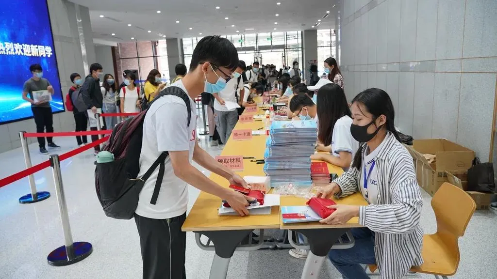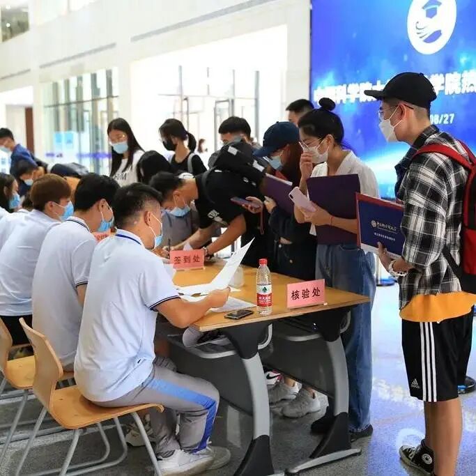 早上7点半,学院入口处、报到大厅、宿舍楼各处工作人员及志愿者全部到岗,准备迎接同学们的到来。8点开始,陆续有研究生前来报到。先在入口处进行行李消杀和寄存,然后进入报到大厅,在志愿者引导下测量体温、查验健康码、进行核酸检测,有序办理入住、发放资料、网络开通等各项手续。 T% G6 ^8 s* c6 |, |# k