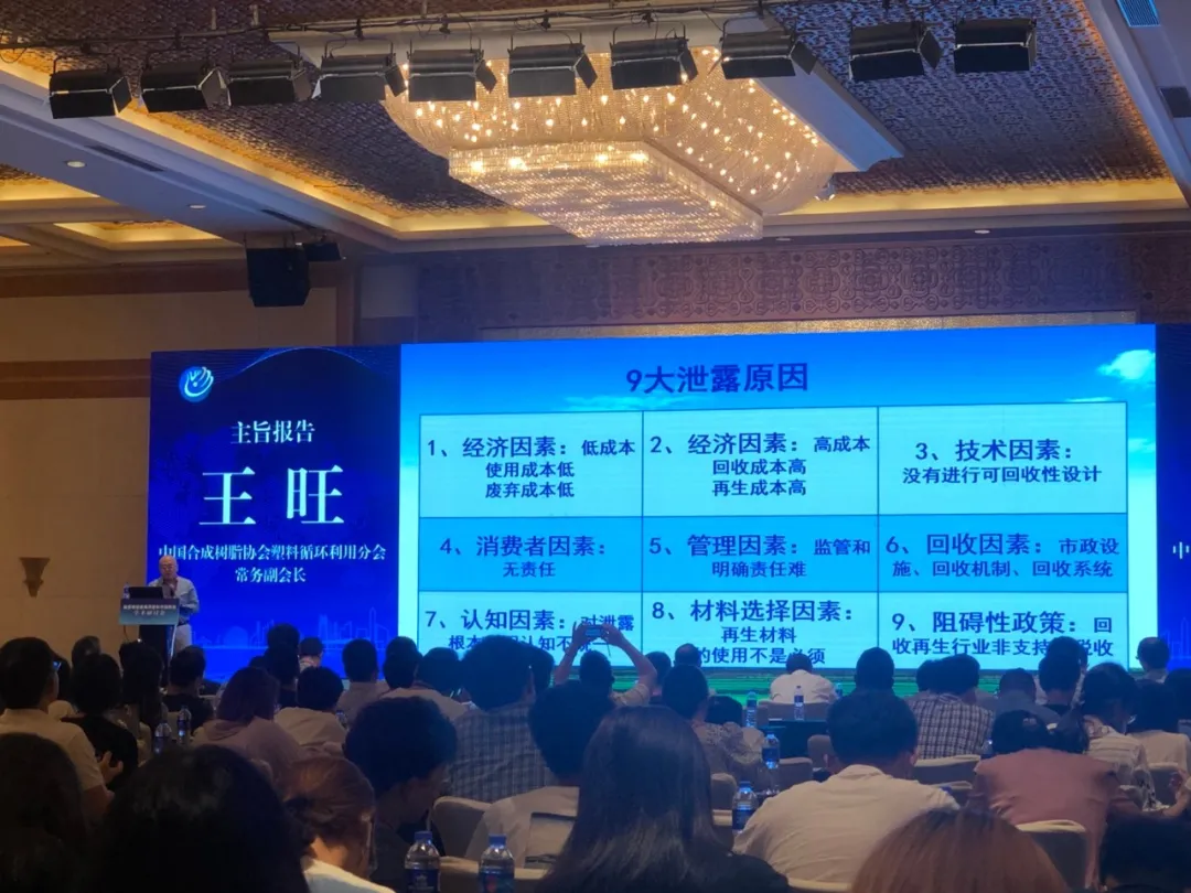 : V4 `7 ?: C6 U. O' L CPRRA常务副会长王旺作为工业界的代表在开幕式上做主旨报告,提出塑料价值链的全面重建以防治塑料污染,从塑料工业一线为学界带来新的思考。“社会问题的背后其实是经济问题的主导”,提出塑料泄露的九大原因。向与会的海洋塑料与微塑料领域的专家学者、行业精英共商塑料价值链的全面重建。