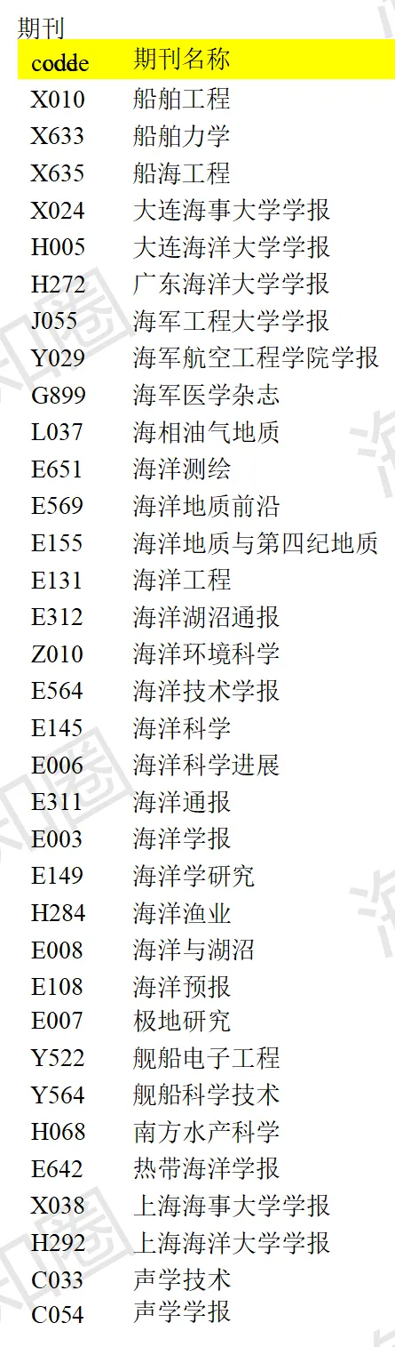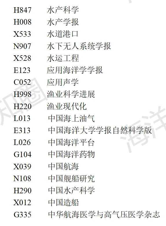 2023年9月20日,中国科学技术信息研究所发布中国科技核心期刊目录(2023年版),包括自然科学卷和社会科学卷。其中自然科学卷-海洋类期刊如下:# Q# J8 [* s6 T1 g% I# T