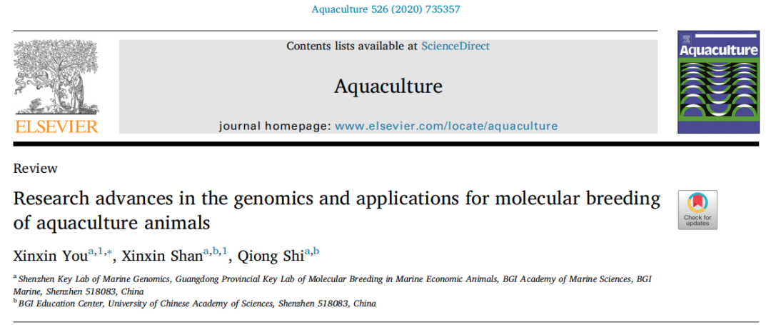 近日,华大海洋在国际知名学术期刊Aquaculture发表题为“水产动物基因组学的研究进展及其在分子育种中的应用”的综述论文,华大海洋研究院副院长游欣欣博士为该文第一作者。该综述分析了水产动物基因组测序和组装分析的概况,探讨用于SNP(单核苷酸多态性,single nucleotide polymorphism)标记分型的测序技术和SNP芯片技术在水产动物研究中的应用,总结了SNP标记在水产动物高密度遗传连锁图谱构建、数量性状定位连锁分析、全基因组关联分析、分子标记辅助选育和基因组选择育种的应用案例,并比较和讨论相关的研究策略和生物信息分析方法。据统计,截至2020年1月底,国内外共有52种水产动物的全基因组图谱发表;另外,针对水产动物,采用简化基因组测序技术的文献71篇,采用基因组重测序技术的文献12篇,采用SNP芯片技术的文献41篇。目前,在实践中可根据物种基因组信息资源开发和商业育种的成熟度以及基因组大小等因素选择技术平台。4 J% z1 Y }! a% j1 F; Z$ s