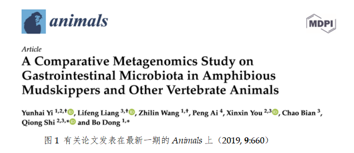 2019年9月6日,华大海洋与广东省农科院合作,于最新一期的农业科学领域著名期刊Animals上,报道了大弹涂鱼等多种鱼类的肠道微生物结果,并与不同生活类型来源的宿主动物(包括两栖弹涂鱼、海洋鱼类、淡水鱼类、两栖动物和陆生动物)进行食性的关联性比较研究。华大海洋研究院博士生易云海、广东省农科院王志林为论文的并列第一作者,广东省农科院在站博士后董博、华大海洋研究院院长石琼教授为论文的共同通讯作者。 & H) o5 |) o% ?5 }4 K4 J+ A* z