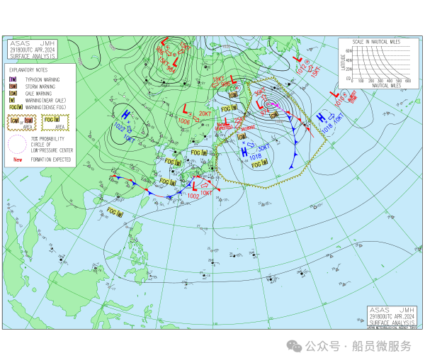 . ^& ^ `. z3 ]6 A# V 29日14时至30日02时,黄海北部海域、黄海中部海域、东海南部海域出现了7~8级、阵风9级的大风。