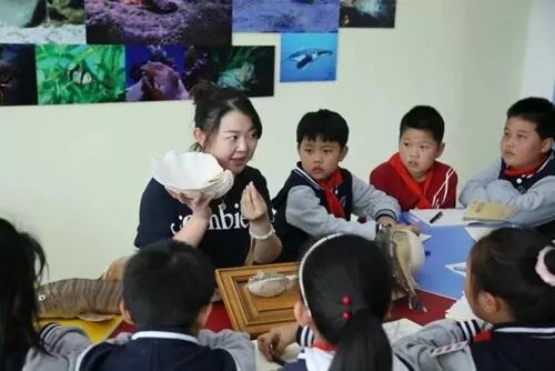在少年海洋科学院资料馆,三位小院士分别介绍了学校开展的各种海洋科普主题活动,班级海洋成长手册,以及小院士研究课题成果。让与会专家与领导再一次为学校统筹、利用、整合校内外优质教育资源,助力学生实践研究,推动学生个性发展所做的努力深感钦佩。 9 G& h. r9 m9 q/ O