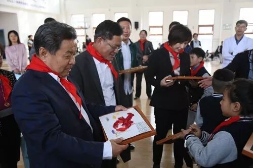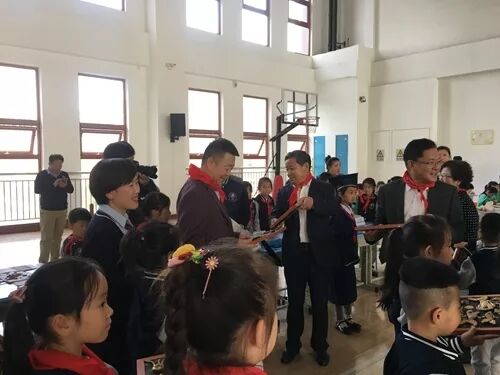 全校师生、家长代表与专家、领导们一起在校体育馆举行了隆重的揭牌仪式。少先队员们为到场的来宾敬献了红领巾,表达了他们最崇高的敬意。 n( Q9 c' {7 W0 {; i: b
