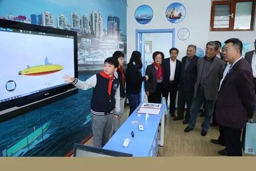 在少年海洋科学院展示馆,小讲解员们为各位来宾介绍了展示馆内不同的展览区。在唐启升院士工作室里,我们的少年海洋科学院小院士们为大家详细介绍了唐院士的成长经历和科研成果;在海洋生物与环境研究室里,海洋专家正带领着研究员们对海洋生物标本进行科学探究;在海洋地质与航海研究室里,小研究员们正在老师的带领下进行海水盐度探究实验;“海洋创客”课题组的同学用大屏幕展示他们利用3D建模技术,打造出逼真的船舶和潜艇模型……学生们思维的独特性、强烈的合作意识、高超的操作能力,让来宾啧啧称赞。专家们对我校少年海洋科学院多元生动的海洋课题研究和丰富多彩的海洋课程融合教育展示给予高度评价。  & ]/ p& m2 @! ?) [7 v