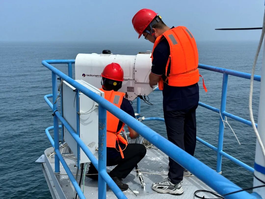 (图5:海上平台试验队员安装设备)