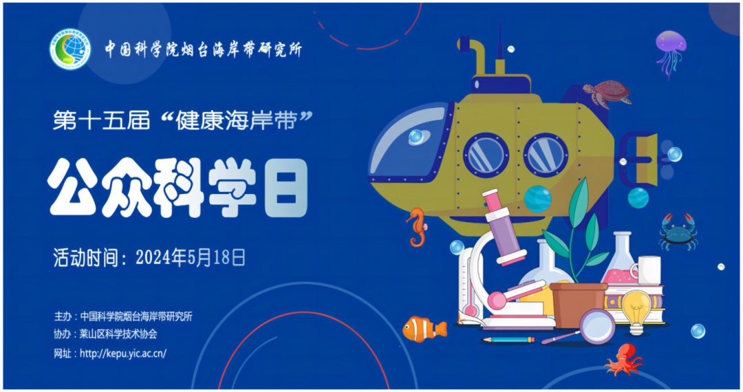 8 z6 t" |+ H) i1 I/ c( W) k: Y 为弘扬科学精神、普及海岸科学知识,中国科学院烟台海岸带研究所定于2024年5月18日举办第十五届“健康海岸带”公众科学日活动。本届活动主题为“拥抱海洋,守护健康"”。活动将面向社会公众展示海岸带生态环境保护,可持续发展等研究以及研究所创新文化,描述科技造福健康海岸的美好愿景,激发公众及青少年对海岸科学事业的关注和兴趣。 " F! N% z* x3 b$ ~4 }