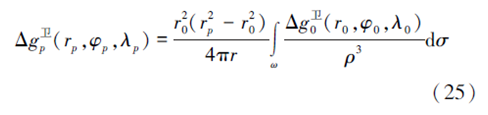 设由卫星测高反演得到的海面重力异常为Δg0卫,对应一定高度上的空中重力异常为Δgp卫,则根据Poisson积分方程得: