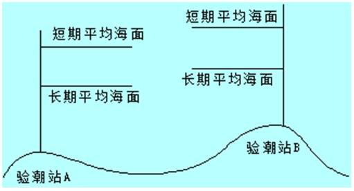 由此便实现了长期(多年)平均海面从长期验潮站A到短期验潮站B的传递。