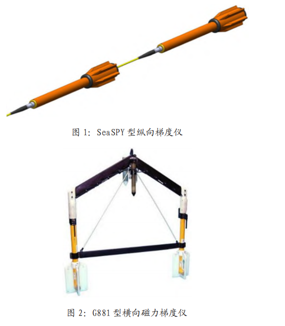 2.2.1 纵向磁场梯度探测 纵向磁场梯度探测是通过一根拖缆将两个磁力仪按照一前一后的方式拖曳测量,两个磁力仪之间保持一定距离间隔。在海洋工程磁场测量中,根据实际应用场景选择并确定两个磁力仪之间的基线长度,纵向梯度磁力仪在工程应用中实施较为方便,因此得到较广泛的应用。典型的纵向磁场梯度探测有加拿大 Marine Magnetics 公司推出的 SeaSPY 型纵向梯度仪,如图 1 所示,美国 Geometrics 公司生产 G-880G 型纵向梯度仪。