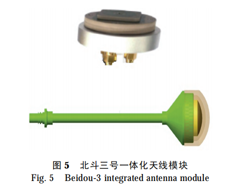 5 J/ ~0 M6 N, v0 f" S 3.2 模组基本组成及工作原理 目前,在研海洋观探测平台均开展了北二向北三模组的换代工作,基于“海洋环境观探测无人平台+BDS3”全方位迭代要求,为解决自身系列化产品问题,采用了基于无人平台嵌入式/模块化的北斗三号模组(见图 5 和图 6)。该模组采用芯片式结构设计,集成为小型 OEM 板卡形态,支持北斗三号 RDSS(区域+全球)/RNSS 一体工作,具备集成度高、可靠性好、尺寸小、响应快、功耗低等特点,且充分考虑与平台共形安装、“六性”设计等特性解决方案,丰富了“三化”特性内涵,成功实现了 HM2000 型/HM4000 型剖面浮标、水下滑翔机、波浪滑翔器、大深度潜标系统等系列海洋环境无人观探测产品北斗二号模组向北斗三号的升级替代与集成优化,具有较强的典型示范作用。北斗三号模组由天线、主板模块及配套线缆和软件组成,采用平台电池直接供电。天线为定位、定时、短报文功能提供射频信号收发功能并进行相应抗干扰处理;主板用于处理天线接收的北斗三号RDSS(区域+全球)/RNSS 信息,完成区域和全球短报文通信信息的收发处理,从而实现基于北斗三号的海洋环境观探测无人平台精确导航/定位与控制、短报文交互和位置报告等功能。