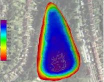 6 Y, ], A* h/ i$ T( b) s) N) {& P HydroSurveyor 测量后的水库二维地图