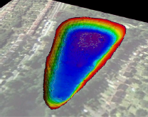 - _/ w& ], m, V2 [9 N) s0 {- d HydroSurveyor 测量后的水库三维地图 ) ]# M" l0 v N3 E" ~8 z