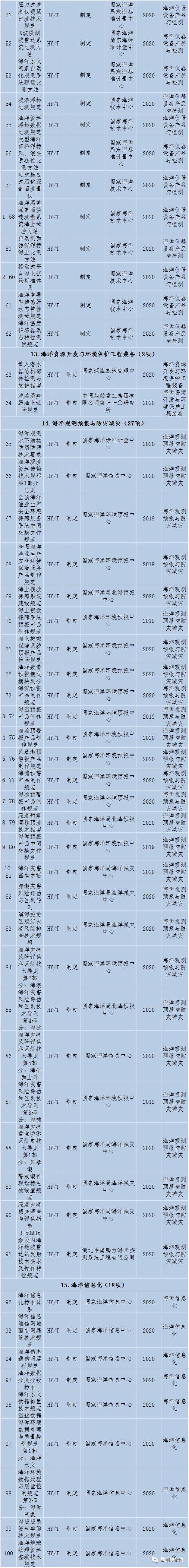 为贯彻落实党的十九大精神,围绕自然资源部新职能,落实部党组关于标准化工作的新要求,按照《海洋标准化管理办法》(国海规范[2016]4号)和原国家海洋局2018年度标准化工作安排,部组织制定了《2018年自然资源(海洋领域)标准制修订工作计划》,共157项行业标准制修订计划项目,包括153项制定类标准、2项修订类标准和2项标准化指导性技术文件。现印发你们,请认真组织实施。有关要求通知如下: 3 A: g$ ~" s! L7 I* L+ g, Z. W" \/ k; F