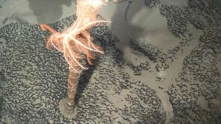 “派大星”背板海星附着于深海海绵之上 ; V( B/ l/ s) y: E( R* |3 ?