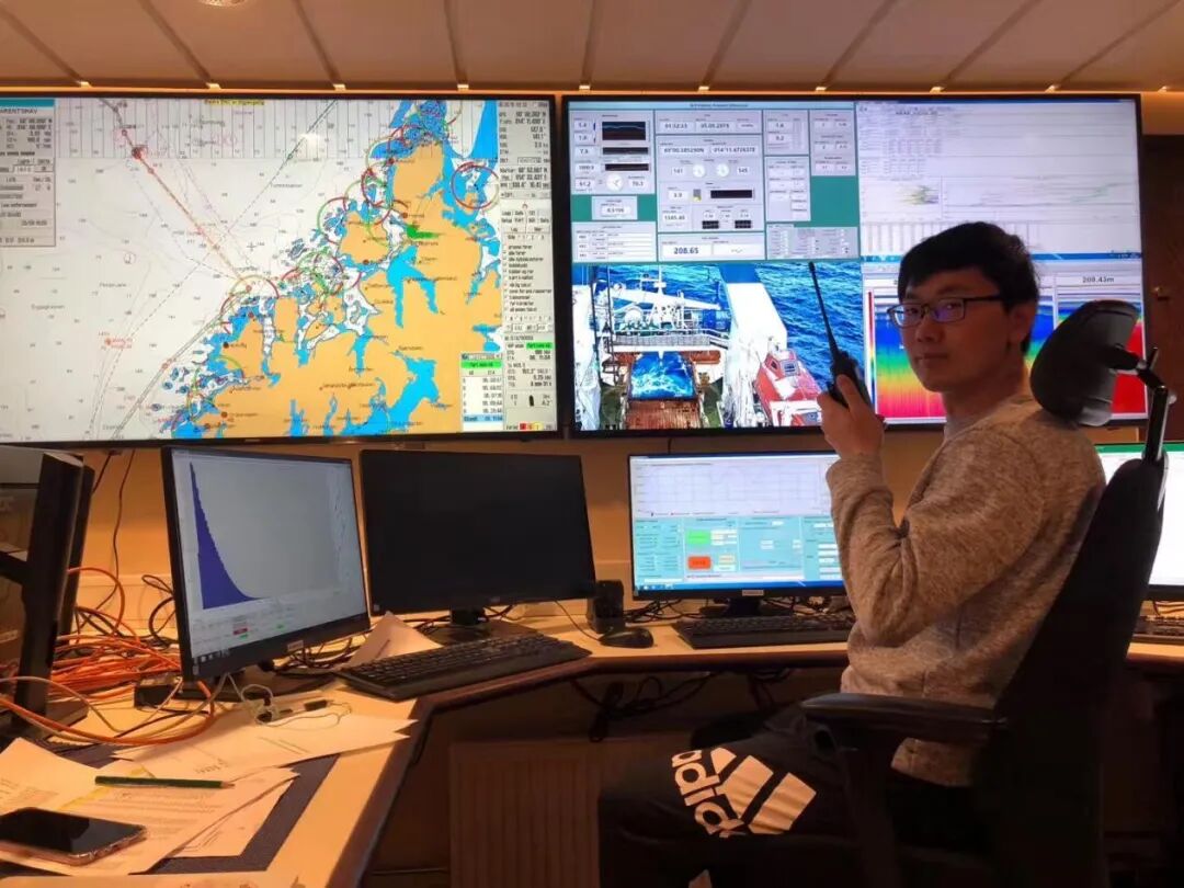 ! D) Z( E0 V' L/ H4 w 2019年4月的中挪航次,是苏志强第一次登上别国的科考船。他在船上主要有两项任务,一则是和老师一起负责ADCP(声学多普勒流速剖面仪)的操作以及数据处理;第二是和来自挪威、法国的科学家一起进行海洋生物的采样工作。此次出行对中国的科研团队还有个重要意义:中国南海北部陆坡和挪威海北部陆坡生态系统同属生物资源热点区,是多种经济鱼种的产卵场和育幼地,也是受自然过程和人类活动严重影响的区域。通过实地出海,他们有机会亲身将二者进行对照研究。如果说科研紧张刺激,航行头晕目眩,除了万能晕船药,碧海蓝天也是一剂治愈良药。“有时候从实验室出去看一眼蔚蓝的大海,真的可以缓解很多。”苏志强说。他记得从甲板看过去,南海好胜的海豚非要与船速一争高下,游得起劲;挪威海的朝阳与西北太平洋的落日让人流连忘返,那是大海给航行者最好的礼物;东海的夜光藻如梦似幻,有如银河落凡间……