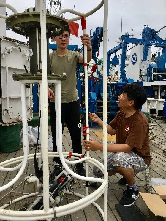 ! o% M3 |" w: M. v( g% x. ` K 国家重大仪器研发项目长江口海试,左为苏志强,右为其导师周朦。 & h0 V/ O* t$ B: D4 }. F/ Z