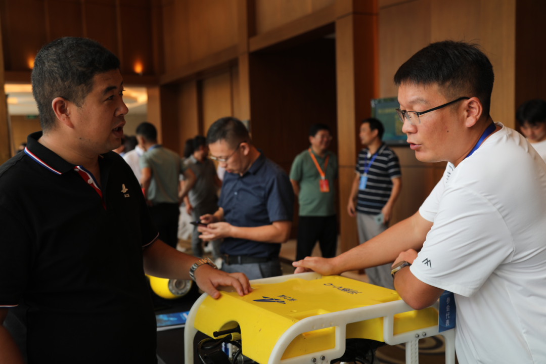 : Y. I4 ]8 e7 E* s 在会议间隙,代表们饶有兴趣地参观了各公司设置的产品展台,并与参展单位就设备技术特点、应用范围、精度指标等进行了深入交流、咨询。本届论坛上展示多为国产化海洋装备,包括多波束测深仪、参量阵浅地层剖面仪、侧扫声呐系统、水面无人艇、水下机器人(AUV、ROV等)、弃投式温盐深剖面测量系统(XBT),水下激光扫描仪、静力触探产品、声学多普勒流速仪(ADCP)、图像声呐等,充分展示我国近些年来在高端海洋装备领域取得的新成果与新突破。 ; _( N1 A, i7 J8 H" P: o, q: M