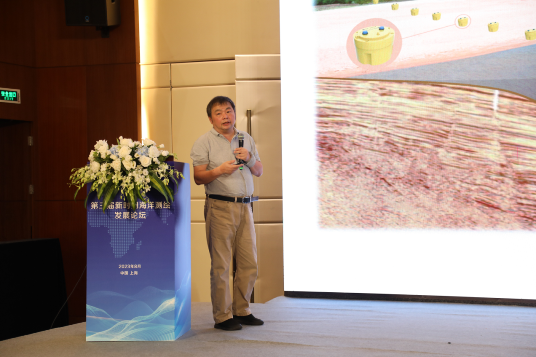 ; Q% |; E( h9 S" r; | 武汉大学赵建虎教授在论坛上作了题为“水下目标声学探测”的报告,他结合AI技术,利用深度学习方法,围绕如何进行水体、海底、浅地层目标的智能识别进行深入阐述,并展示了近些年来所取得的成果与研究进展。
