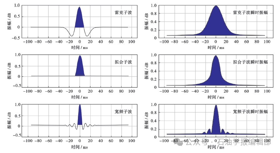 Hz的宽频地震数据中,由于子波有着丰富的低频信息,可以压制绝大多数子波旁瓣,而其中丰富的高频信息又可以很大程度地提高振幅包络属性的精度。 图6 不同子波及瞬时振幅比较# f: h0 k6 p* C+ w8 N