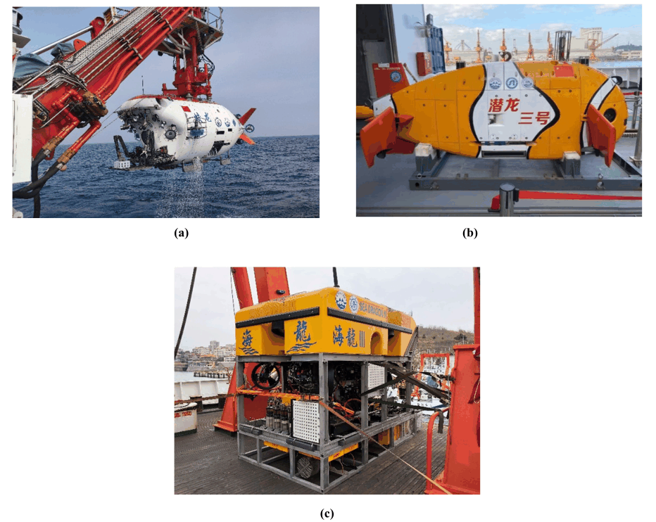 (a)“蛟龙”号载人潜水器;(b)“潜龙”号自主潜水器;(c)“海龙”号遥控潜水器1 e( Q% k7 j( S; y