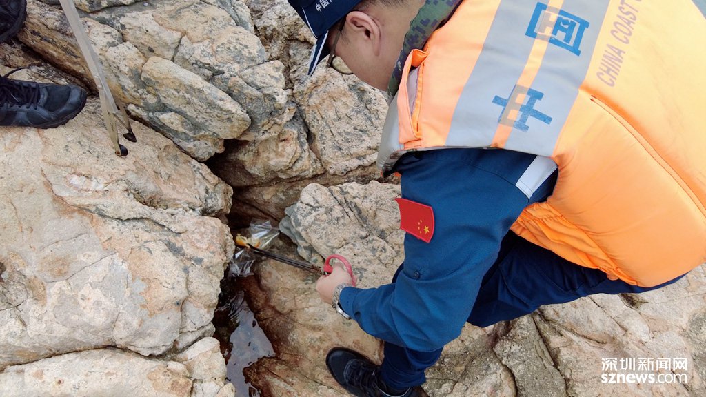 海警执法员和深圳大学生命与科学研究院人员清理燕鸥栖息地。 , p* |: ^. i" [' ^