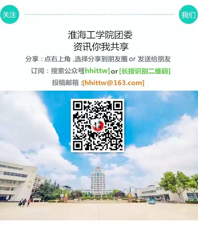 ( d: z6 G% \/ r ·点我关注·淮海工学院团委