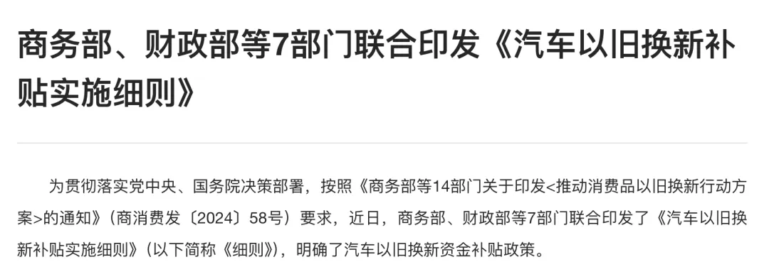 继4月底,商务部、财政部等7部门联合印发《汽车以旧换新补贴实施细则》,针对报废国三及以下排放标准燃油乘用车及2018年4月30日前注册登记的新能源乘用车,并购买符合节能要求乘用车新车的个人消费者,提供可享受高达10000万的补贴后,不少车企趁着五一假期也纷纷的跟进政策,推出相关车型的置换优惠。