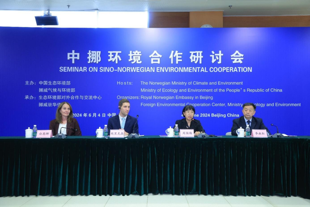 , ^# y7 B$ |5 p& ~0 P% S1 G/ g 2024年6月4日,中国生态环境部与挪威气候与环境部在京共同举办中挪环境合作研讨会。挪威气候与环境大臣埃里克森(Andreas Bjelland Eriksen)、中国生态环境部国际合作司司长周国梅出席会议并致辞,挪威环境署署长哈姆布罗(Ellen Hambro)发表视频致辞。 " i8 ?. d; i. q6 y7 C