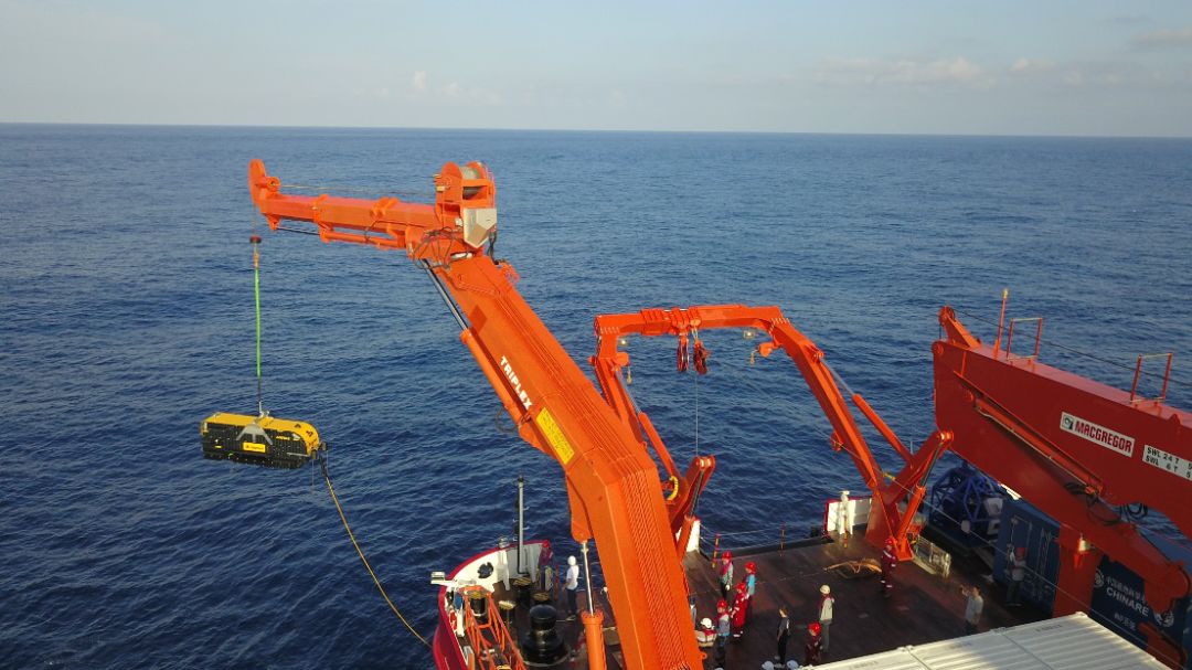 在海底底层信息获取和分析方面,“雪龙2” 号配备的Edgetech 2400 DT-2深拖系统搭载了2024高精度浅水多波束、浅地层剖面仪、侧扫声呐、单波束测深仪等多款声学设备,可以在拖体距底约100米的情况下获得近底高分辨率微地形地貌及海底地层信息。拖体采用超短基线加PHINS组合定位系统,可实时传输拖体在水下精确的位置及深度信息,为极地科研人员判断决策提供精准依据。 5 u! R& @ @! @1 y