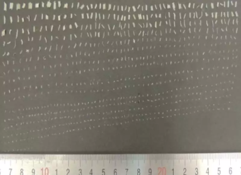 " T' J! ?, M7 A8 A' o7 k! v! G ▲山东沿海废弃养殖区潮滩中分离挑出的扁丝薄片类微塑料